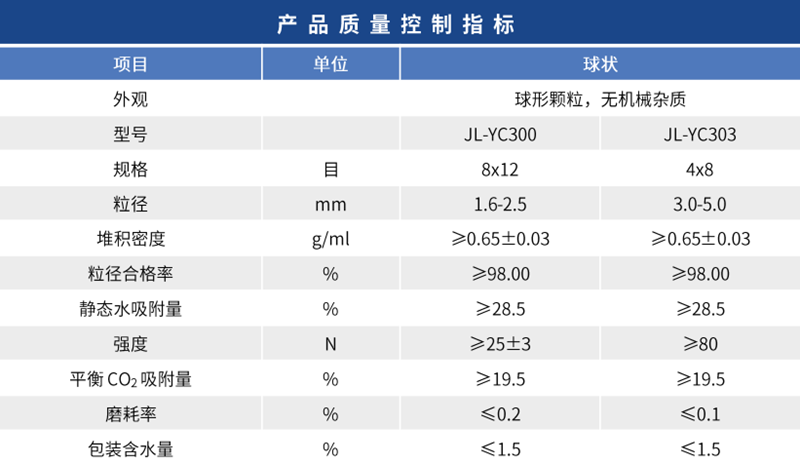 YC300/303型分子筛,主要应用在深冷空分制氧装置上,产品有强度高,不易粉化,吸附速率快,使用寿命长等等优点。 主要应用: YC300/YC303型分子筛,主要应用在深冷空分制氧装置上,去除原料气中的水、二氧化碳、硫化物、及一部分不饱和烃类;实施氮氧分离,制取工业、医用氧气;产品有强度高,不易粉化,吸附速率快,使用寿命长等等优点。