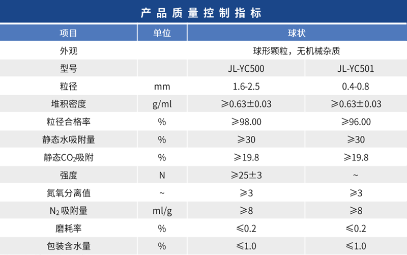 YC500 型高效制氧分子筛,是一种新型 X 型制氧分子筛,主要应用于加压吸附-常压解析的 PSA 变压吸附制氧工艺,具有优良的氮氧分离系数和很高的氮气吸附能力。 主要应用: YC500 型高效制氧分子筛,主要应用于变压吸附(PSA)制氧装置,应用于 PSA 工业制氧和医用中心供氧系统等设备中;优点是:具有制氧纯度高,产氧量高,不易粉化,吸附速率快,使用寿命长等等优点。