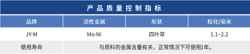 JY-M催化剂是一种重油加氢脱金属催化剂。作为固定床重油加氢处理工艺中的支撑催化剂,具有孔径大、孔径大、酸性弱等特点,可去除加氢原料中的金属杂质,防止反应器床压降增大,保护下游。主催化剂作用良好,性能优于同类进口催化剂。 JY-M1型催化剂主要去除金属杂质并兼顾部分脱硫功能,稳定性好,金属容量强,可达自重的90%。 JY-M2和JY-M3催化剂脱金属脱硫活性高,具有良好的金属容量,可达自重的80%。