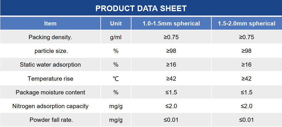 - As a catalyst carrier, adsorption of water molecules in oil.